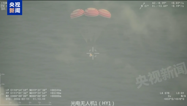当梦舟返回舱穿越大气层时,无人直升机搭载的光电观测设备迅速捕获目标,并转入稳定跟踪模式。在整个返回舱开伞、乘伞下降直至溅落海面的关键过程中,无人机编队实现了不间断的连续跟踪与高清视频记录,实时回传的画面清晰呈现了返回舱动态姿态、降落伞系统工作状态等关键景象,为试验评估提供了不可替代的一手可视化数据。