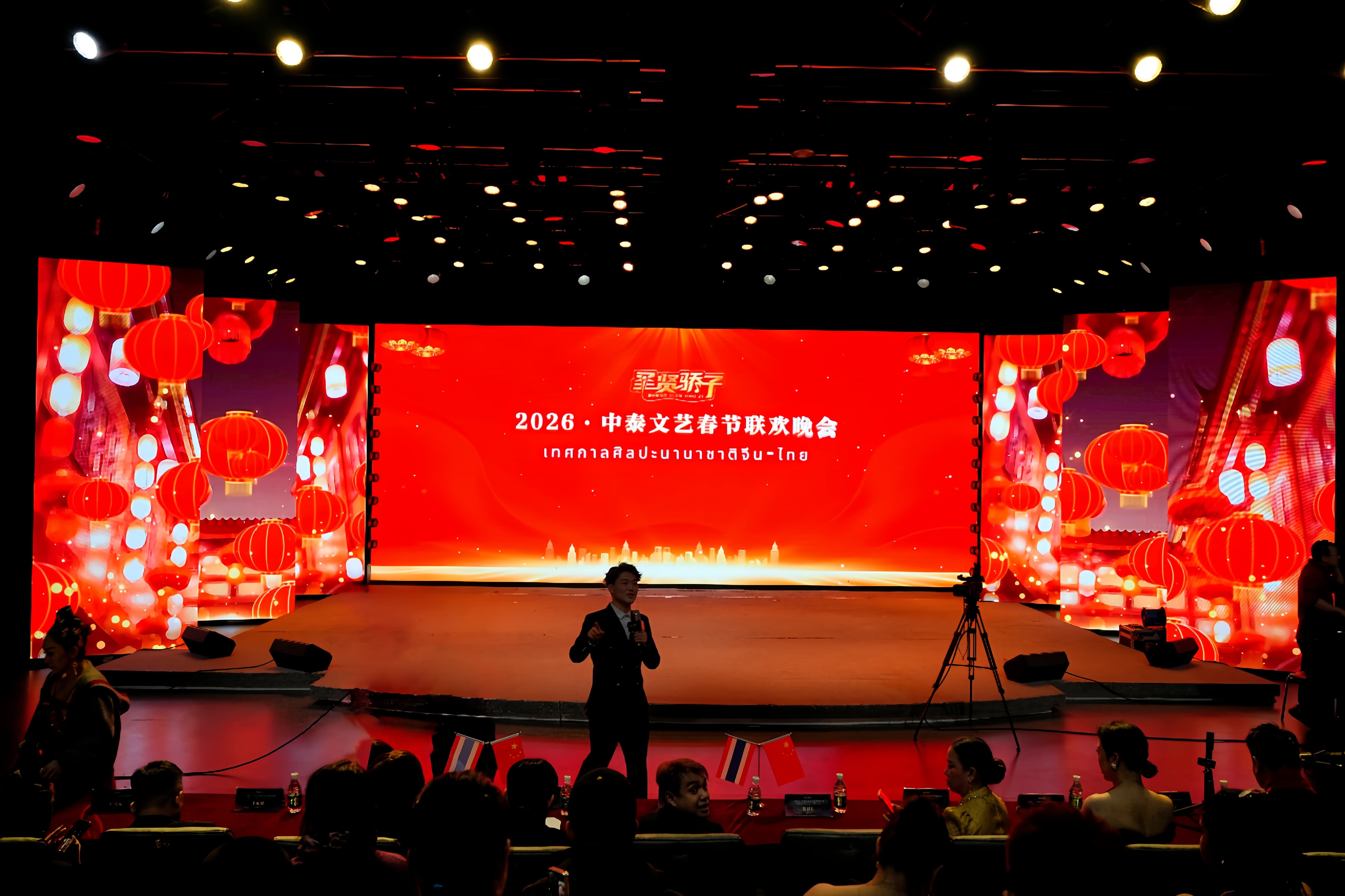 本届春晚由长春广播电视台主持人张溯洲、央视外景主持人李子璇,以及来自泰国的中泰双语主持人MISS SUDARAT MEKSAEN(苏易安)联袂主持,三位主持人以专业稳健的台风、流畅自然的双语表达,串联起整场文艺交流活动,成为晚会现场的重要亮点。晚会由泰国国际艺术文化促进中心与中国圣贤骄子组委会联合承办。圣贤骄子组委会近年来已在全球成功举办多届国际艺术文化交流活动,足迹遍布泰国、越南、马来西亚、韩国、老挝等国家及中国香港、澳门地区,具备丰富的国际艺术交流经验与深厚品牌积淀,整体制作规格严谨、艺术呈现丰富。本节目由中国弘邦智业品牌独家赞助,该品牌拥有多年合规商标资质,专注青少年家庭教育领域。